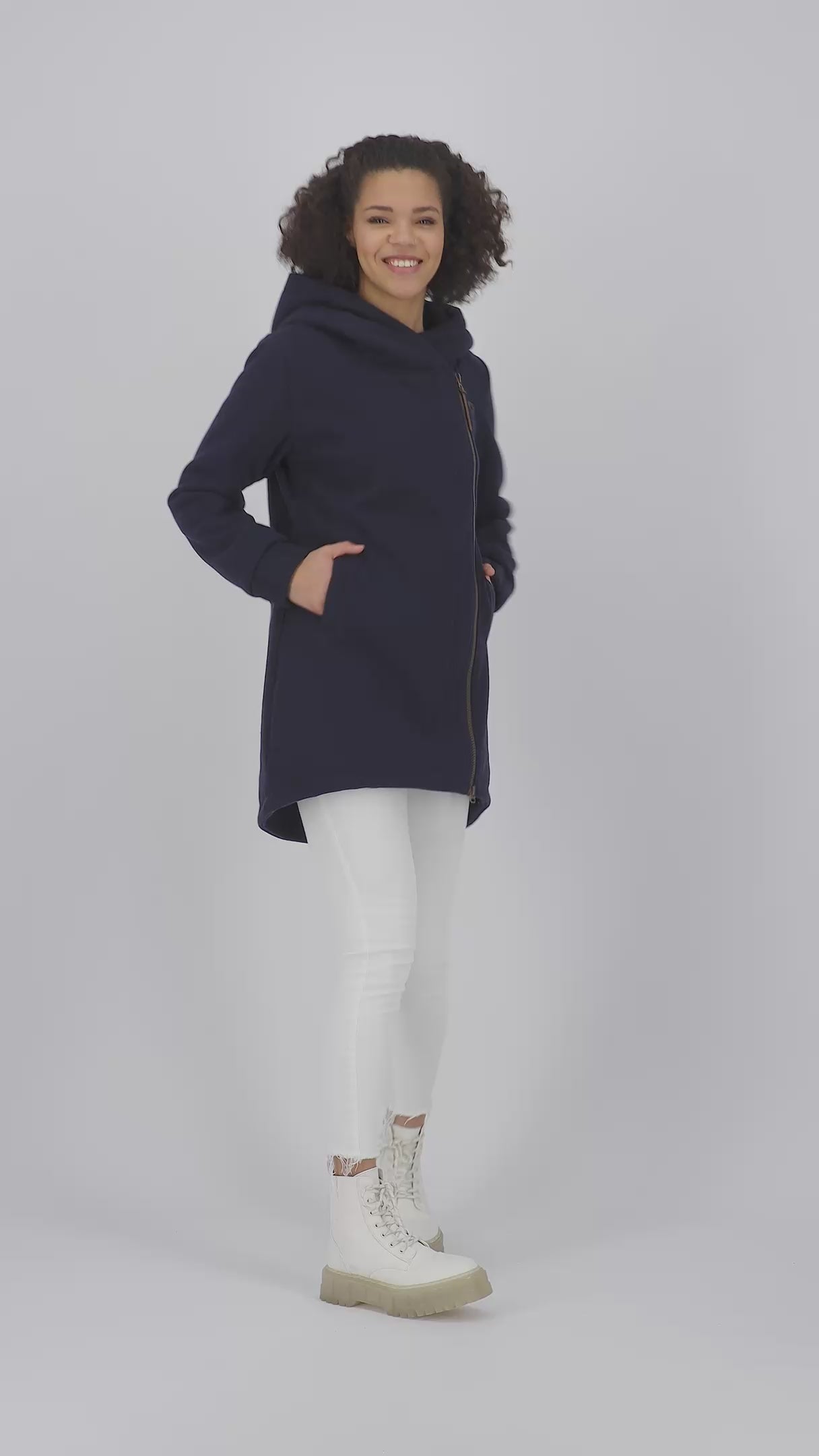 - Gefütterte Kapuze und seitliche Eingriffstaschen