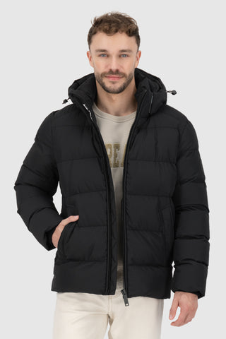 - Warm gefütterte Herrenjacke mit abnehmbarer Kapuze und leichtläufigem Reißverschluss