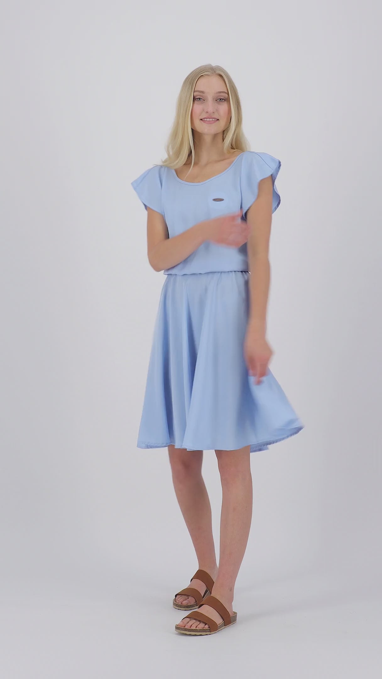 - Großer Rundhalsausschnitt und Volantärmel verleihen feminine Note