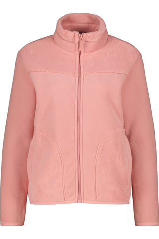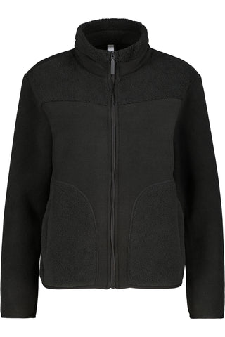 - Mittelreißverschluss und gerundete Eingrifftaschen aus Teddyfleece – durchgehend im Material-Look gehalten